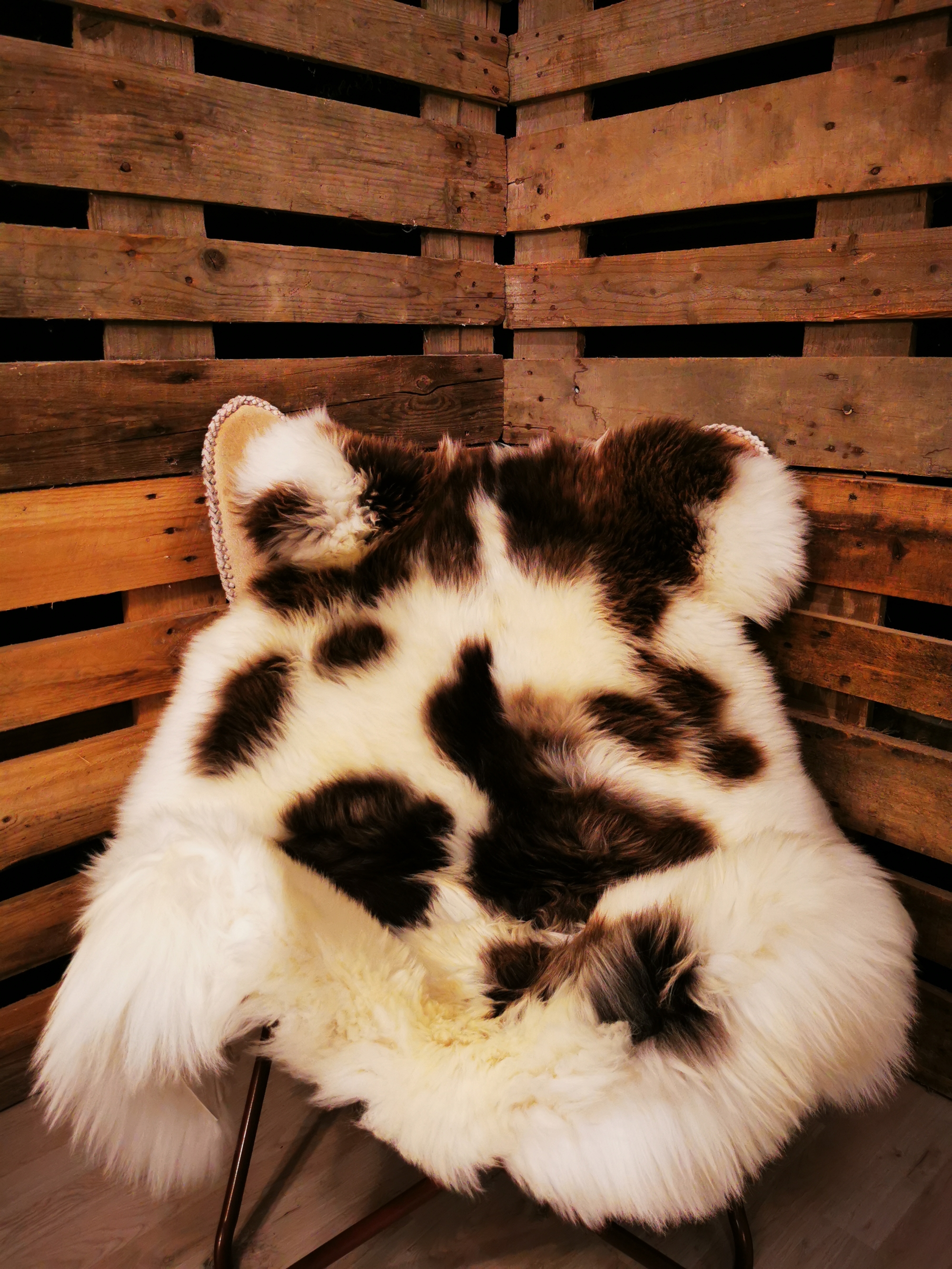 Das Lammfell ist 135cm. "Jacob Schaf" ist eine sehr seltene Schafrasse, die ursprünglich aus Asien stammt. In der Bibel erwähnt im Zusammenhang mit dem Apostel Jacob (daher der Name). Im 18. Jahrhundert kamen die Jacob Schafe nach England. Das Fell zeichnet sich durch die schwarz/grau/braun/weiße Farbmarkierung aus. Sowohl männliche als auch weibliche Schafe können bis zu 6 Hörner haben und Ihre Wolle wird hoch geschätzt. Die Felle sind groß – geschnitten und sehr wuschelich. Sie sind sehr dekorativ und eignen sich auch sehr gut als Gebrauchsfelle. Die zarten, natürlichen Farbtöne bieten unzählige Verwendungsmöglichkeiten an, und kann besonderes nützlich sein als Gebrauchs- und Dekorationsfelle für zum Beispiel Esstisch Stühle.