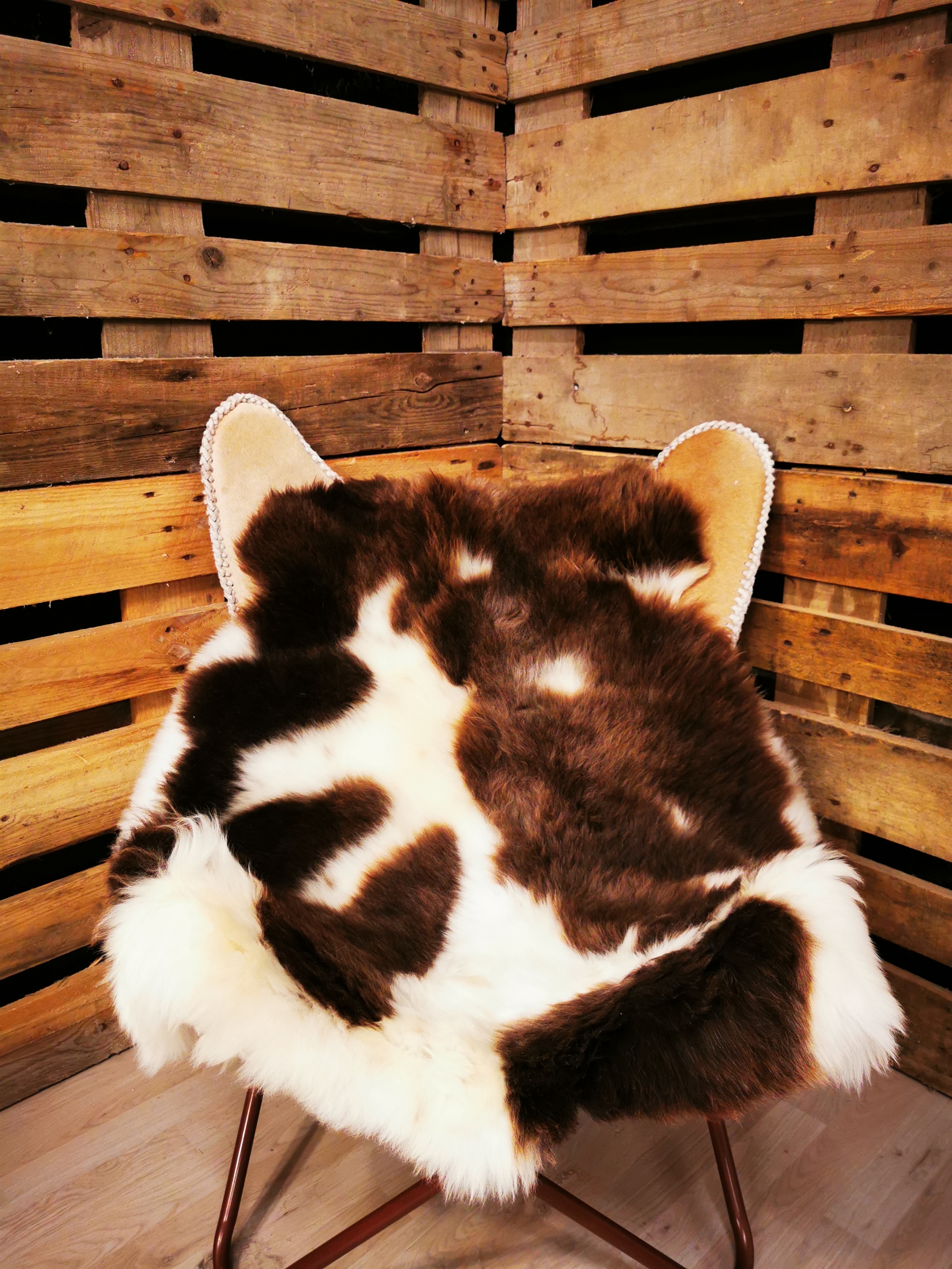 Das Lammfell ist 120cm. "Jacob Schaf" ist eine sehr seltene Schafrasse, die ursprünglich aus Asien stammt. In der Bibel erwähnt im Zusammenhang mit dem Apostel Jacob (daher der Name). Im 18. Jahrhundert kamen die Jacob Schafe nach England. Das Fell zeichnet sich durch die schwarz/grau/braun/weiße Farbmarkierung aus. Sowohl männliche als auch weibliche Schafe können bis zu 6 Hörner haben und Ihre Wolle wird hoch geschätzt. Die Felle sind groß – geschnitten und sehr wuschelich. Sie sind sehr dekorativ und eignen sich auch sehr gut als Gebrauchsfelle. Die zarten, natürlichen Farbtöne bieten unzählige Verwendungsmöglichkeiten an, und kann besonderes nützlich sein als Gebrauchs- und Dekorationsfelle für zum Beispiel Esstisch Stühle.