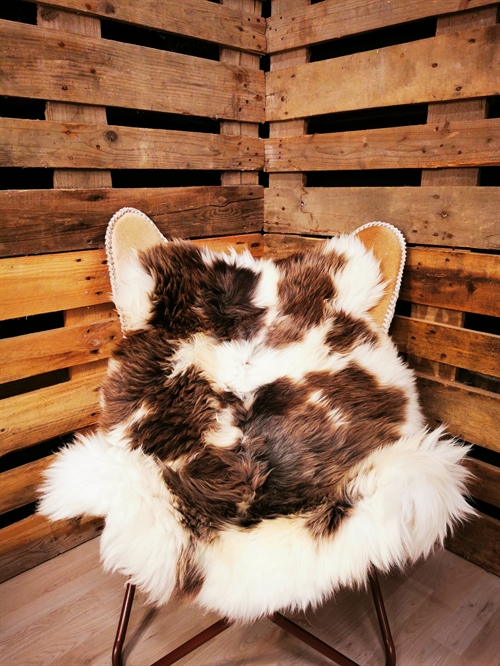 Das Lammfell ist 120cm. "Jacob Schaf" ist eine sehr seltene Schafrasse, die ursprünglich aus Asien stammt. In der Bibel erwähnt im Zusammenhang mit dem Apostel Jacob (daher der Name). Im 18. Jahrhundert kamen die Jacob Schafe nach England. Das Fell zeichnet sich durch die schwarz/grau/braun/weiße Farbmarkierung aus. Sowohl männliche als auch weibliche Schafe können bis zu 6 Hörner haben und Ihre Wolle wird hoch geschätzt. Die Felle sind groß – geschnitten und sehr wuschelich. Sie sind sehr dekorativ und eignen sich auch sehr gut als Gebrauchsfelle. Die zarten, natürlichen Farbtöne bieten unzählige Verwendungsmöglichkeiten an, und kann besonderes nützlich sein als Gebrauchs- und Dekorationsfelle für zum Beispiel Esstisch Stühle.