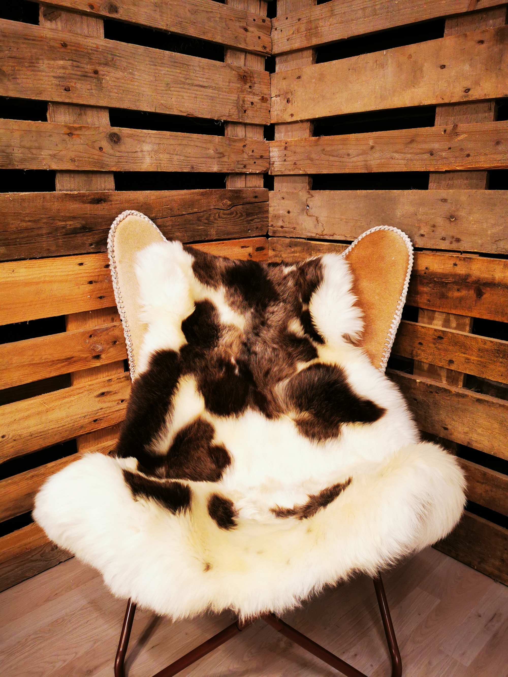Das Lammfell ist 120cm. "Jacob Schaf" ist eine sehr seltene Schafrasse, die ursprünglich aus Asien stammt. In der Bibel erwähnt im Zusammenhang mit dem Apostel Jacob (daher der Name). Im 18. Jahrhundert kamen die Jacob Schafe nach England. Das Fell zeichnet sich durch die schwarz/grau/braun/weiße Farbmarkierung aus. Sowohl männliche als auch weibliche Schafe können bis zu 6 Hörner haben und Ihre Wolle wird hoch geschätzt. Die Felle sind groß – geschnitten und sehr wuschelich. Sie sind sehr dekorativ und eignen sich auch sehr gut als Gebrauchsfelle. Die zarten, natürlichen Farbtöne bieten unzählige Verwendungsmöglichkeiten an, und kann besonderes nützlich sein als Gebrauchs- und Dekorationsfelle für zum Beispiel Esstisch Stühle.