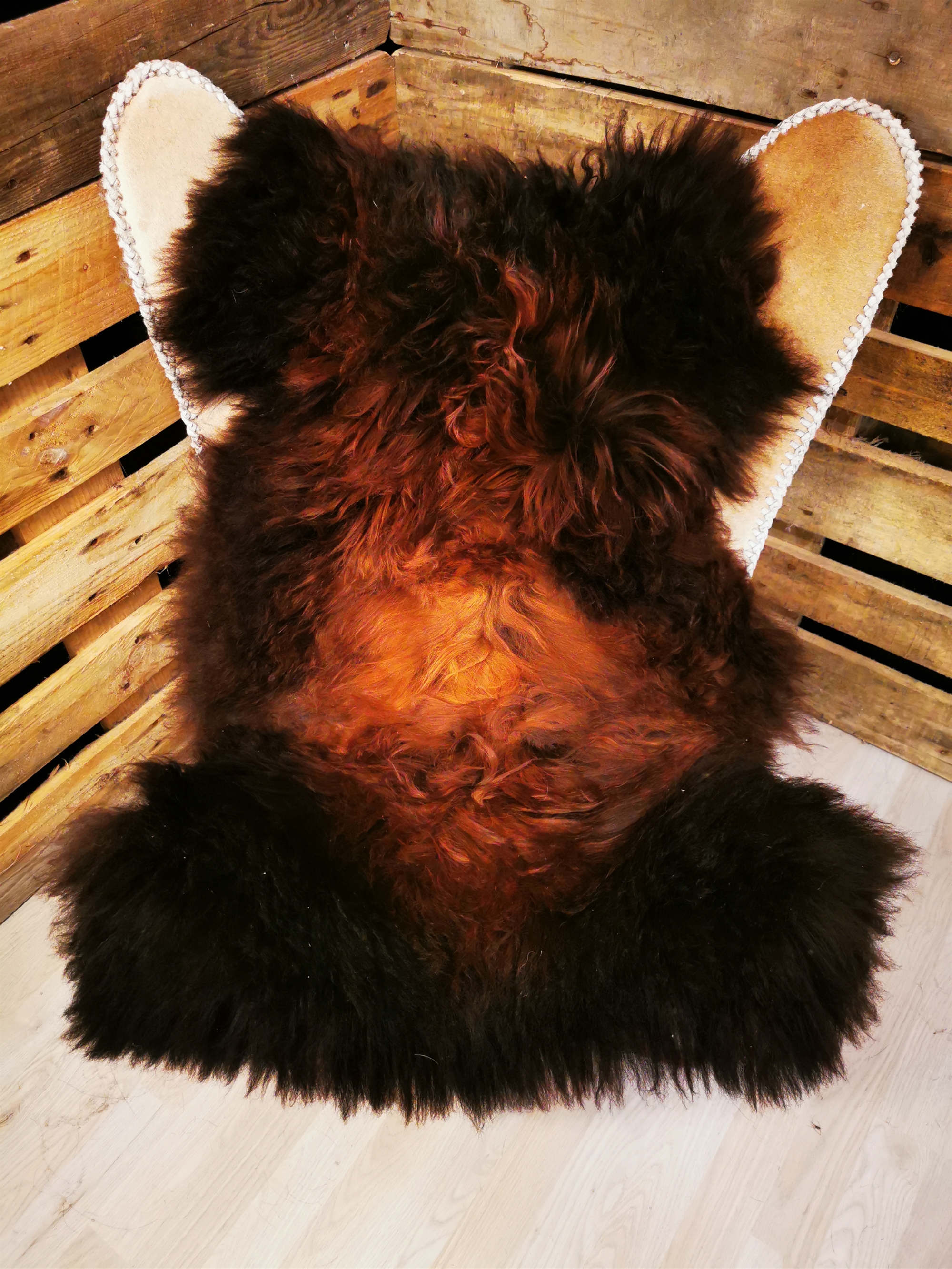 Das Lammfell ist 120cm. Lang. Lang. Erleben Sie ein einzigartiges Spiel aus Farben und Texturen mit unseren europäischen Flame-Lammfellen, deren Spitzen schonend gebleicht wurden, um eine wunderschöne, goldene Nuance hervorzuheben. Dieses elegante Fell vereint die raue Schönheit der Natur mit einem Hauch von raffiniertem Handwerk.