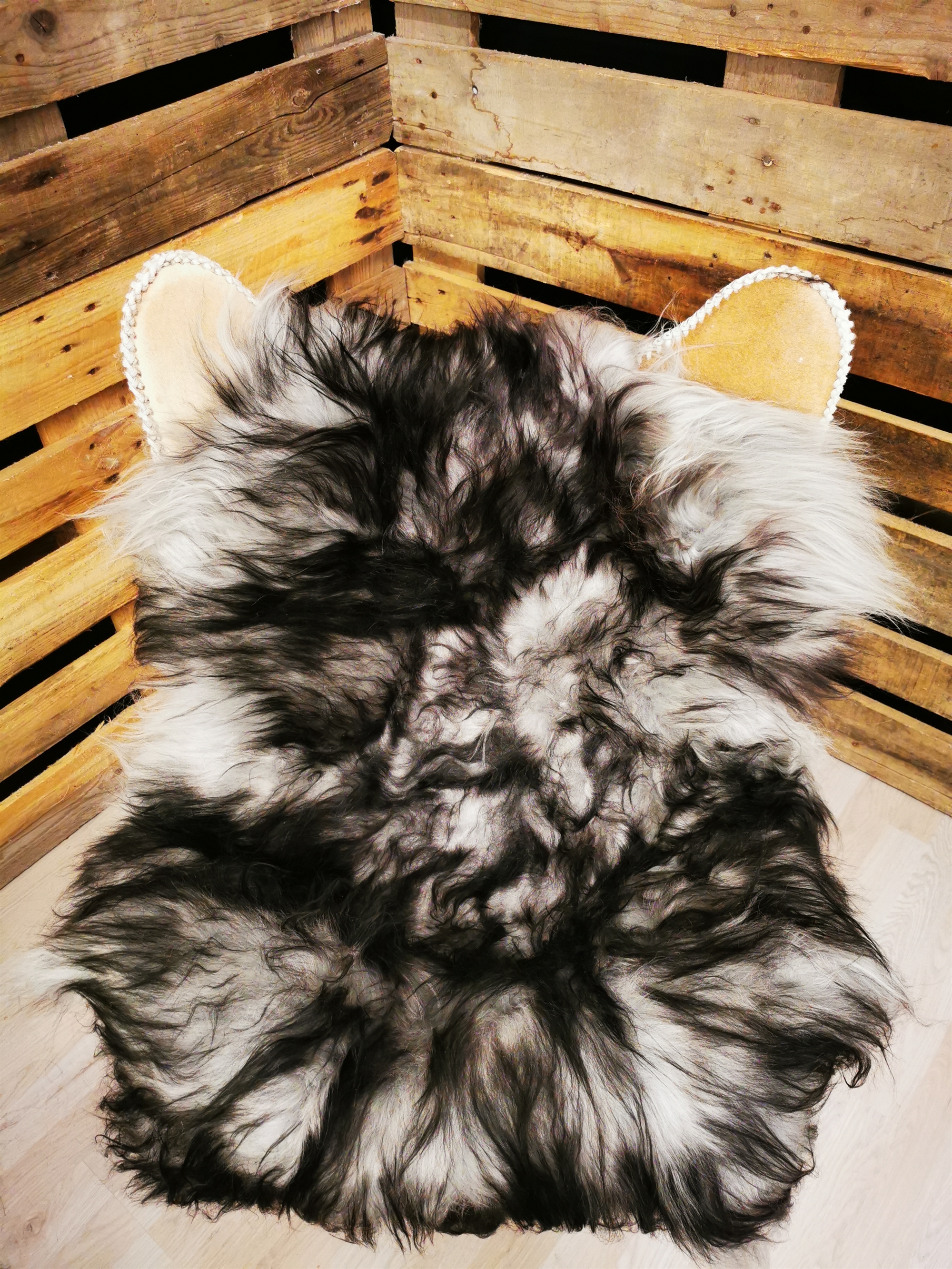 Das Lammfell ist 130cm. Lang."Entdecken Sie die atemberaubende Schönheit unseres isländischen "Silver Shadow" Lammfells. Dieses natürliche weiße Lammfell wurde mit eleganten Grautönen und dekorativen schwarzen Spitzen verzaubert, die einen visuell beeindruckenden Kontrast schaffen. Jedes Lammfell wird sorgfältig aufgrund seiner hohen Qualität und Weichheit ausgewählt, um ein luxuriöses und angenehmes Erlebnis zu bieten. Die nordische Inspiration im Namen "Silver Shadow" spiegelt die schöne Landschaft und die mysteriöse Atmosphäre Islands wider. Dieses Lammfell ist nicht nur eine schöne Dekoration, sondern es fügt auch Wärme und Gemütlichkeit in jeden Raum hinzu. Verwenden Sie es als elegante Decke über einem Stuhl oder Sofa oder legen Sie es auf den Boden, um eine einladende Atmosphäre zu schaffen. Es eignet sich auch perfekt, um eine gemütliche Oase in Ihrer Lese- oder Schlafnische zu schaffen. Unser "Silver Shadow" Lammfell ist ein einzigartiges und exklusives Stück, das Ihrem Zuhause eine subtile nordische Note verleiht. Jedes Detail wird sorgfältig behandelt, um sicherzustellen, dass Sie ein Produkt von höchster Qualität erhalten. Gönnen Sie sich selbst oder einem geliebten Menschen dieses wunderschöne isländische "Silver Shadow" Lammfell, das eine Aura von Eleganz und natürlicher Schönheit in Ihr Zuhause bringt."