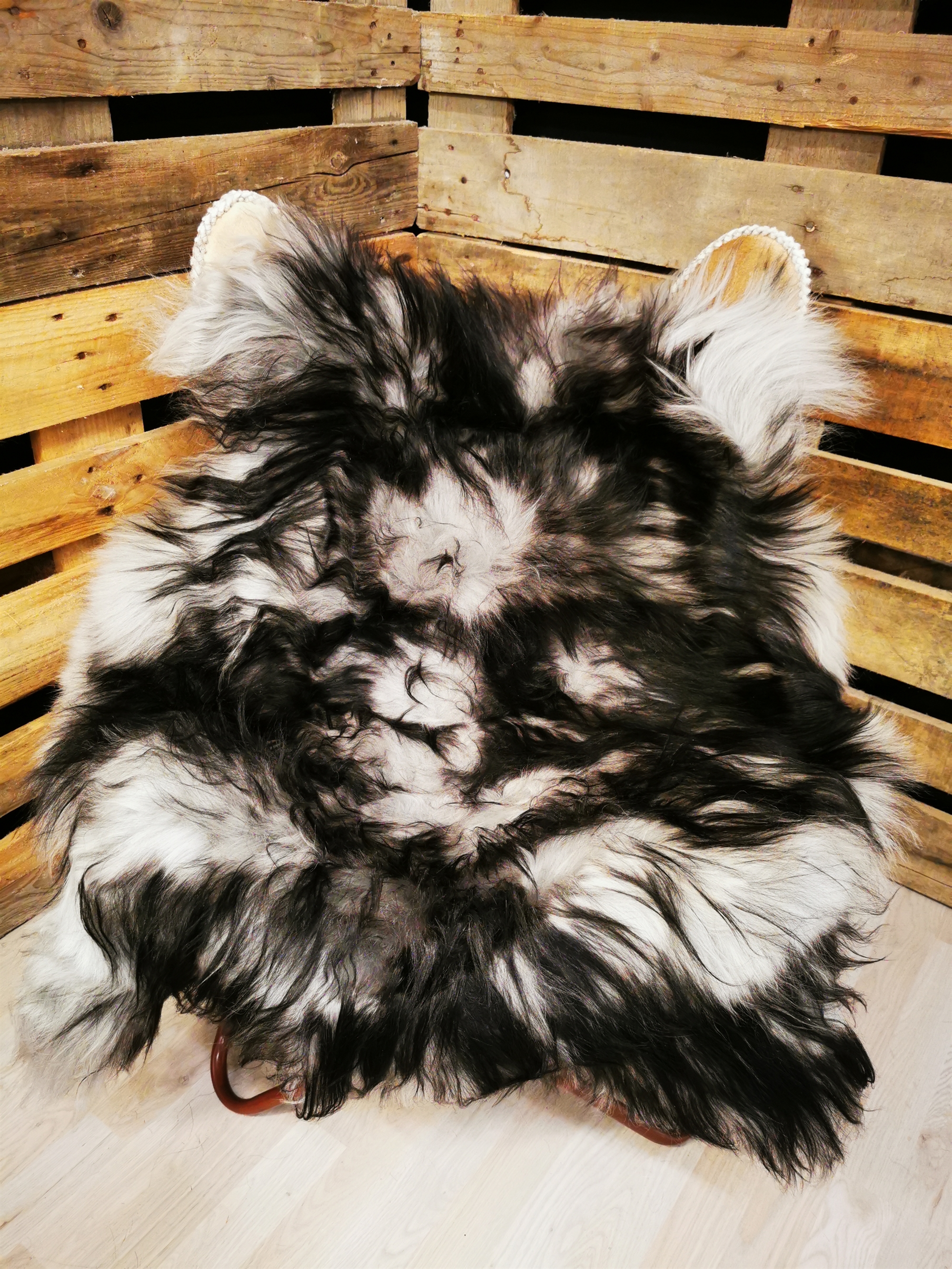 Das Lammfell ist 130cm. Lang."Entdecken Sie die atemberaubende Schönheit unseres isländischen "Silver Shadow" Lammfells. Dieses natürliche weiße Lammfell wurde mit eleganten Grautönen und dekorativen schwarzen Spitzen verzaubert, die einen visuell beeindruckenden Kontrast schaffen. Jedes Lammfell wird sorgfältig aufgrund seiner hohen Qualität und Weichheit ausgewählt, um ein luxuriöses und angenehmes Erlebnis zu bieten. Die nordische Inspiration im Namen "Silver Shadow" spiegelt die schöne Landschaft und die mysteriöse Atmosphäre Islands wider. Dieses Lammfell ist nicht nur eine schöne Dekoration, sondern es fügt auch Wärme und Gemütlichkeit in jeden Raum hinzu. Verwenden Sie es als elegante Decke über einem Stuhl oder Sofa oder legen Sie es auf den Boden, um eine einladende Atmosphäre zu schaffen. Es eignet sich auch perfekt, um eine gemütliche Oase in Ihrer Lese- oder Schlafnische zu schaffen. Unser "Silver Shadow" Lammfell ist ein einzigartiges und exklusives Stück, das Ihrem Zuhause eine subtile nordische Note verleiht. Jedes Detail wird sorgfältig behandelt, um sicherzustellen, dass Sie ein Produkt von höchster Qualität erhalten. Gönnen Sie sich selbst oder einem geliebten Menschen dieses wunderschöne isländische "Silver Shadow" Lammfell, das eine Aura von Eleganz und natürlicher Schönheit in Ihr Zuhause bringt."