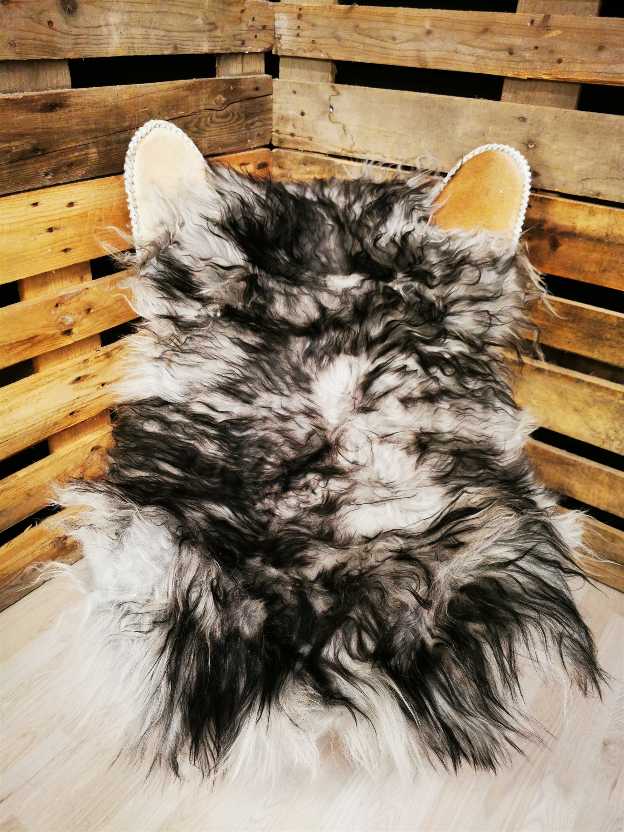 Das Lammfell ist 120cm. Lang."Entdecken Sie die atemberaubende Schönheit unseres isländischen "Silver Shadow" Lammfells. Dieses natürliche weiße Lammfell wurde mit eleganten Grautönen und dekorativen schwarzen Spitzen verzaubert, die einen visuell beeindruckenden Kontrast schaffen. Jedes Lammfell wird sorgfältig aufgrund seiner hohen Qualität und Weichheit ausgewählt, um ein luxuriöses und angenehmes Erlebnis zu bieten. Die nordische Inspiration im Namen "Silver Shadow" spiegelt die schöne Landschaft und die mysteriöse Atmosphäre Islands wider. Dieses Lammfell ist nicht nur eine schöne Dekoration, sondern es fügt auch Wärme und Gemütlichkeit in jeden Raum hinzu. Verwenden Sie es als elegante Decke über einem Stuhl oder Sofa oder legen Sie es auf den Boden, um eine einladende Atmosphäre zu schaffen. Es eignet sich auch perfekt, um eine gemütliche Oase in Ihrer Lese- oder Schlafnische zu schaffen. Unser "Silver Shadow" Lammfell ist ein einzigartiges und exklusives Stück, das Ihrem Zuhause eine subtile nordische Note verleiht. Jedes Detail wird sorgfältig behandelt, um sicherzustellen, dass Sie ein Produkt von höchster Qualität erhalten. Gönnen Sie sich selbst oder einem geliebten Menschen dieses wunderschöne isländische "Silver Shadow" Lammfell, das eine Aura von Eleganz und natürlicher Schönheit in Ihr Zuhause bringt."