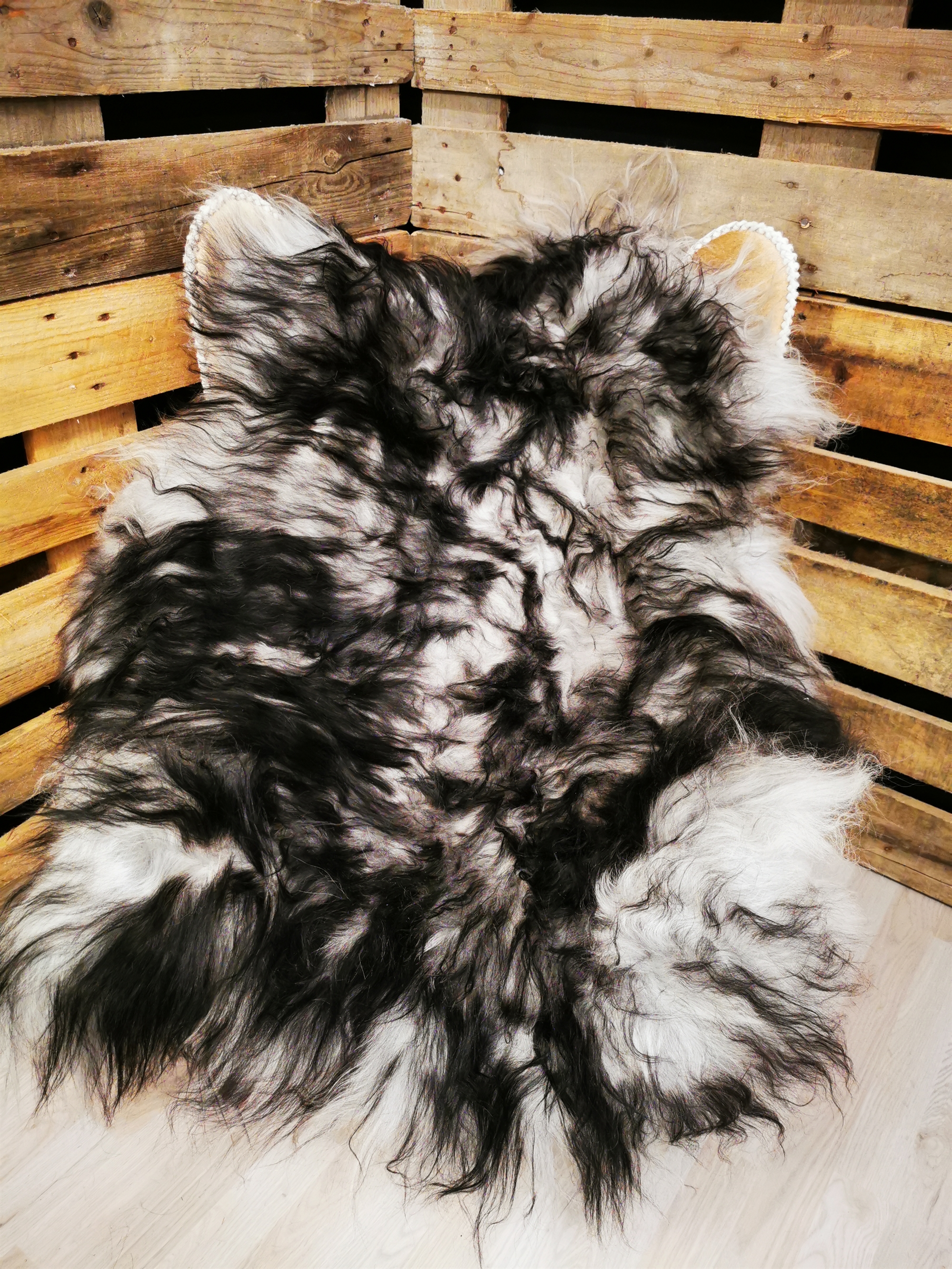 Das Lammfell ist 130cm. Lang."Entdecken Sie die atemberaubende Schönheit unseres isländischen "Silver Shadow" Lammfells. Dieses natürliche weiße Lammfell wurde mit eleganten Grautönen und dekorativen schwarzen Spitzen verzaubert, die einen visuell beeindruckenden Kontrast schaffen. Jedes Lammfell wird sorgfältig aufgrund seiner hohen Qualität und Weichheit ausgewählt, um ein luxuriöses und angenehmes Erlebnis zu bieten. Die nordische Inspiration im Namen "Silver Shadow" spiegelt die schöne Landschaft und die mysteriöse Atmosphäre Islands wider. Dieses Lammfell ist nicht nur eine schöne Dekoration, sondern es fügt auch Wärme und Gemütlichkeit in jeden Raum hinzu. Verwenden Sie es als elegante Decke über einem Stuhl oder Sofa oder legen Sie es auf den Boden, um eine einladende Atmosphäre zu schaffen. Es eignet sich auch perfekt, um eine gemütliche Oase in Ihrer Lese- oder Schlafnische zu schaffen. Unser "Silver Shadow" Lammfell ist ein einzigartiges und exklusives Stück, das Ihrem Zuhause eine subtile nordische Note verleiht. Jedes Detail wird sorgfältig behandelt, um sicherzustellen, dass Sie ein Produkt von höchster Qualität erhalten. Gönnen Sie sich selbst oder einem geliebten Menschen dieses wunderschöne isländische "Silver Shadow" Lammfell, das eine Aura von Eleganz und natürlicher Schönheit in Ihr Zuhause bringt."