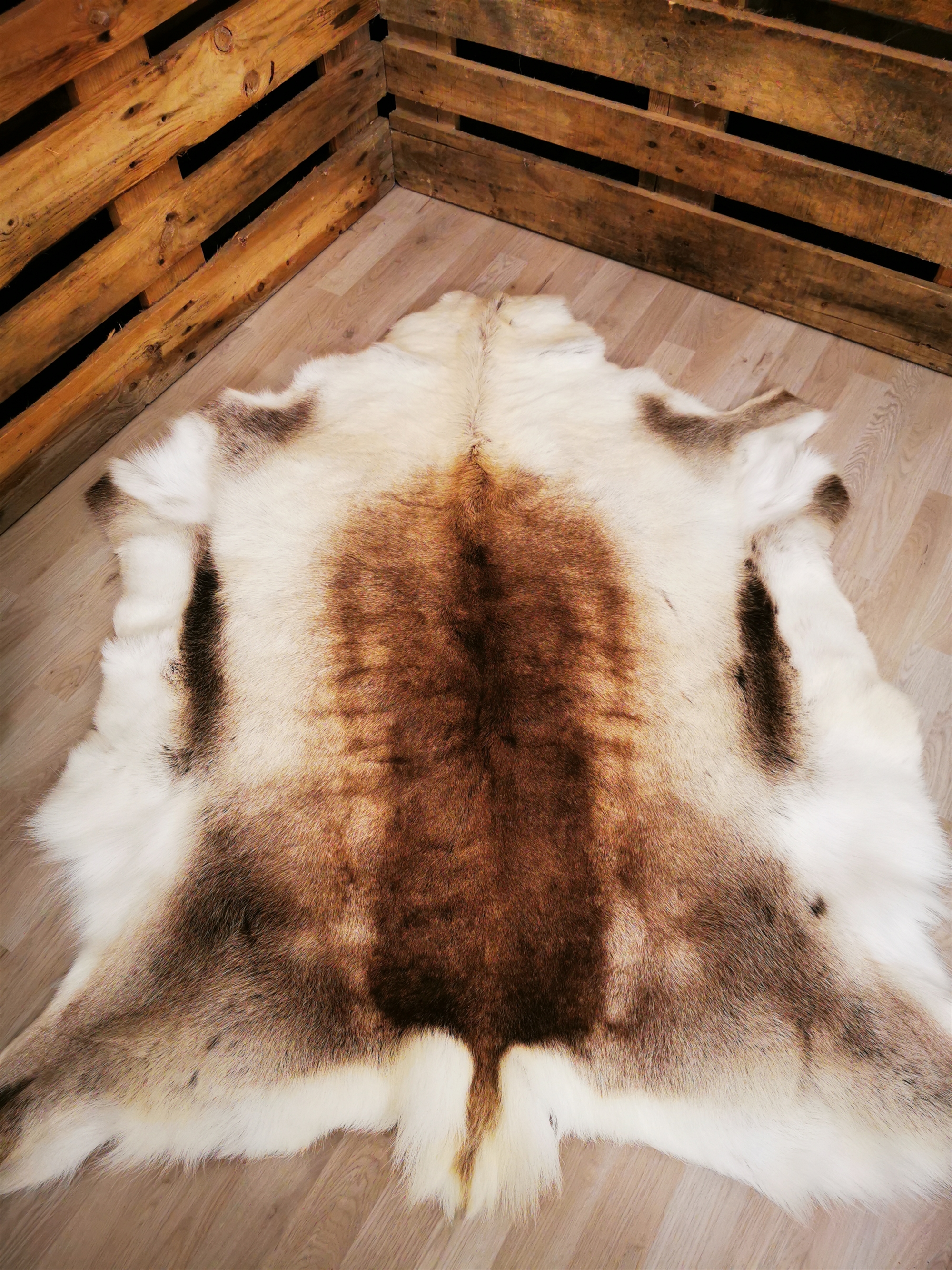 Das Rentier ist 140cm. Rentierfell ist bekannt für seine außergewöhnlichen Eigenschaften, die es zu einem beliebten Material für verschiedene Anwendungen machen, insbesondere in arktischen und subarktischen Regionen. Das Fell besteht aus einer dicken Unterwolle und langen, hohlen Grannenhaaren, die zusammen eine hervorragende Isolationsfähigkeit bieten. Die hohlen Haare erzeugen eine Luftschicht, die als wirksame Barriere gegen Kälte dient, während die dichte Unterwolle zusätzlichen Schutz vor Wind und Wetter bietet. Eine der bemerkenswertesten Eigenschaften von Rentierfell ist sein geringes Gewicht, was es leicht zu transportieren und in Kleidung und Decken zu verwenden macht. Darüber hinaus sind die äußeren Haare von Natur aus wasserabweisend, was dazu beiträgt, das Fell auch bei feuchten Bedingungen trocken zu halten. Rentierfell ist auch für seine Haltbarkeit und Widerstandsfähigkeit gegen Abnutzung bekannt, was es ideal für den Einsatz in rauen Umgebungen und für den langfristigen Gebrauch macht. Neben seinen praktischen Vorteilen hat Rentierfell eine natürliche Schönheit mit Variationen in Farbe und Textur, die jedes Fell einzigartig machen. Dies macht es zu einer attraktiven Wahl für dekorative Zwecke und bringt ein Stück Natur und rustikale Eleganz in jedes Zuhause. Das Fell kann auf vielfältige Weise verwendet werden, von warmen und komfortablen Decken und Bettüberwürfen bis hin zu schönen dekorativen Elementen. Die Kombination aus praktischen und ästhetischen Eigenschaften macht Rentierfell zu einem wertvollen Material in sowohl traditionellen als auch modernen Kontexten. Es wird häufig in Kleidungsstücken wie Jacken, Hüten, Handschuhen und Stiefeln verwendet, insbesondere von indigenen Völkern in arktischen Regionen. Darüber hinaus ist es als dekoratives Element in Wohnungen beliebt und wird auch in traditionellen Handwerken und Kunstwerken verwendet.